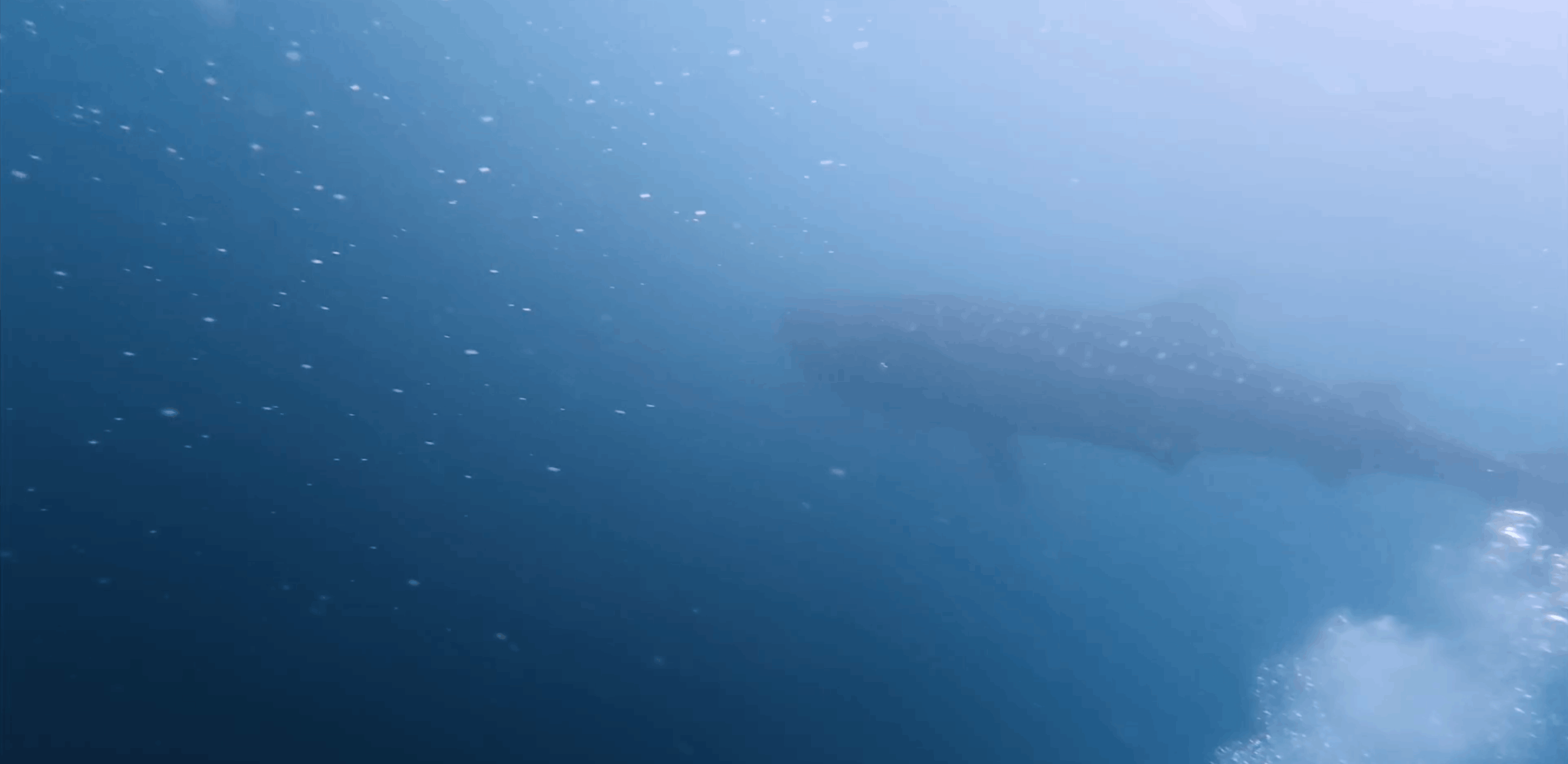 The plankton haze was very visible on this dive — that milky, suspended cloudiness in the water column is the tell. When you see it, stay in it. That's the whale shark highway.