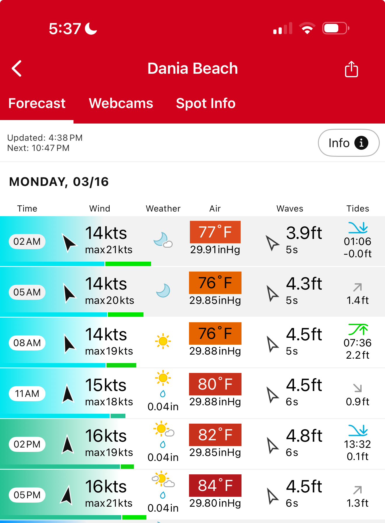 I check the Windfinder Website or App to check the wave direction, tides, and wave heights.